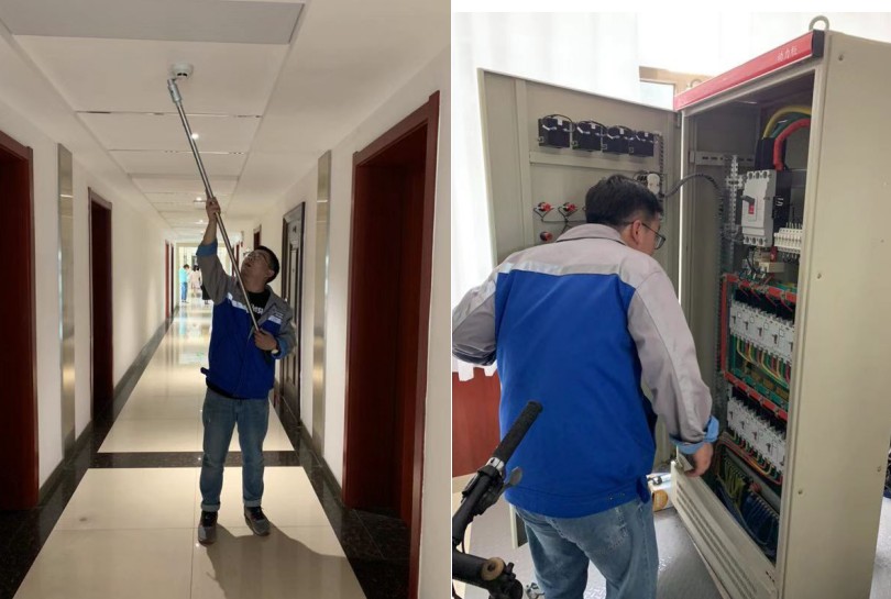 •   2019年7月11日,甘肅安卓工程技術(shù)有限公司消防事業(yè)部技術(shù)人員楊乾儒、達(dá)朝旭認(rèn)真貫徹《消防法》、《社會(huì)消防技術(shù)服務(wù)管理規(guī)定》,根據(jù)《火災(zāi)自動(dòng)報(bào)警系統(tǒng)設(shè)計(jì)規(guī)范》、《建筑設(shè)計(jì)防火規(guī)范》、《給水及消火栓設(shè)計(jì)規(guī)范》、《建筑滅火器配置設(shè)計(jì)規(guī)范GB50140-2005》的要求,對(duì)紅古區(qū)人民政府辦公大樓進(jìn)行消防設(shè)施維保。